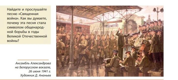 • «победа Советского Союза в Великой Отечественной войне стала возможной благодаря дружбе народов СССР. Ставка А. Гитлера на разобщение многонационального советского народа не оправдала себя».