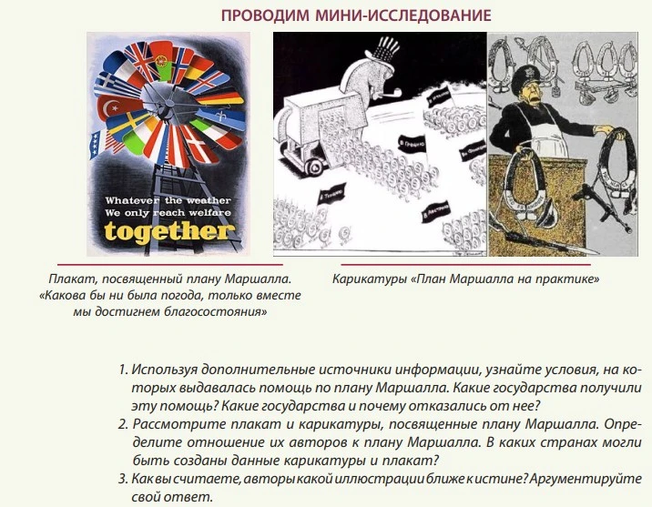 Но ведь еще в 1945-м СССР взял под контроль Восточную Европу, а в 1946-м потребовал от Турции совместного контроля над черноморскими проливами и размещения в этой зоне советских военных баз, стал помогать греческим антиправительственным повстанцам-коммунистам. А ни Турция, ни Греция даже не входили в советскую сферу влияния. То есть Западу пришлось действовать в ответ — но, разумеется, в учебнике об этом не пишут.