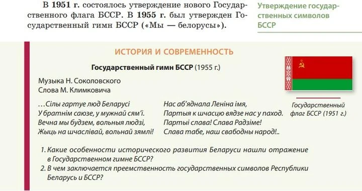 Полностью в духе советской пропаганды описаны и оппозиционные «фронты», которые появились в конце 1980-х в разных республиках: «Их выступления носили ярко выраженный националистический и сепаратистский характер, а деятельность была направлена на достижение выхода республик из состава СССР». А ведь на самом деле все они — в том числе и «Беларуский народный фронт» — на первом этапе хотели добиться возврата к национальному языку и культуре, а затем — восстановления независимости. Нормальное желание для жителей любой страны, которая ранее была захвачена соседом.