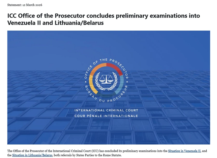 Офис прокурора Международного уголовного суда принял решение о начале расследования предполагаемых преступлений против человечности, совершенных в Беларуси. Дело рассматривается в связи с ситуацией в Литве/Беларуси, отмечается на сайте МУС: