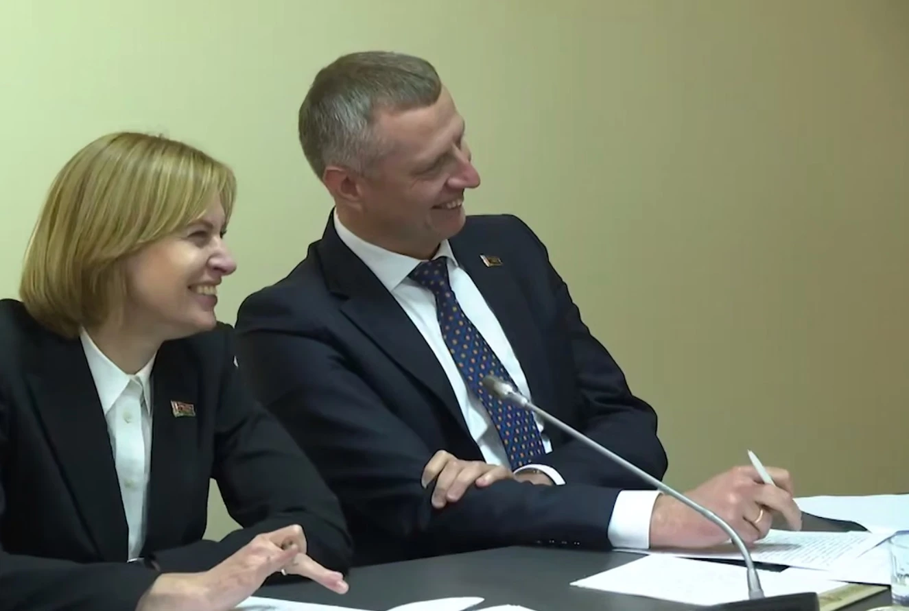 Дмитрий Крутой с вице-премьером Натальей Петкевич. Скриншот видео