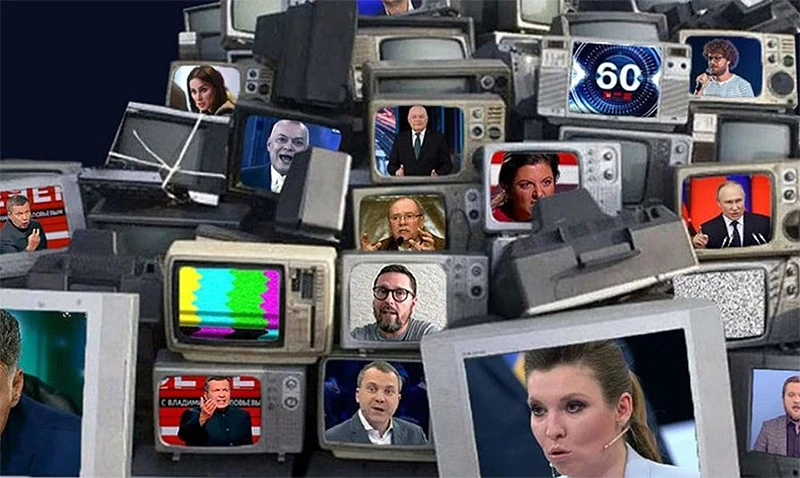 Но на самом деле российские телевизоры страдают, конечно, не зря. Потому что до сих пор Россия воевала в Украине. А самой России эта война касалась мало, в основном по краешку и не очень часто.